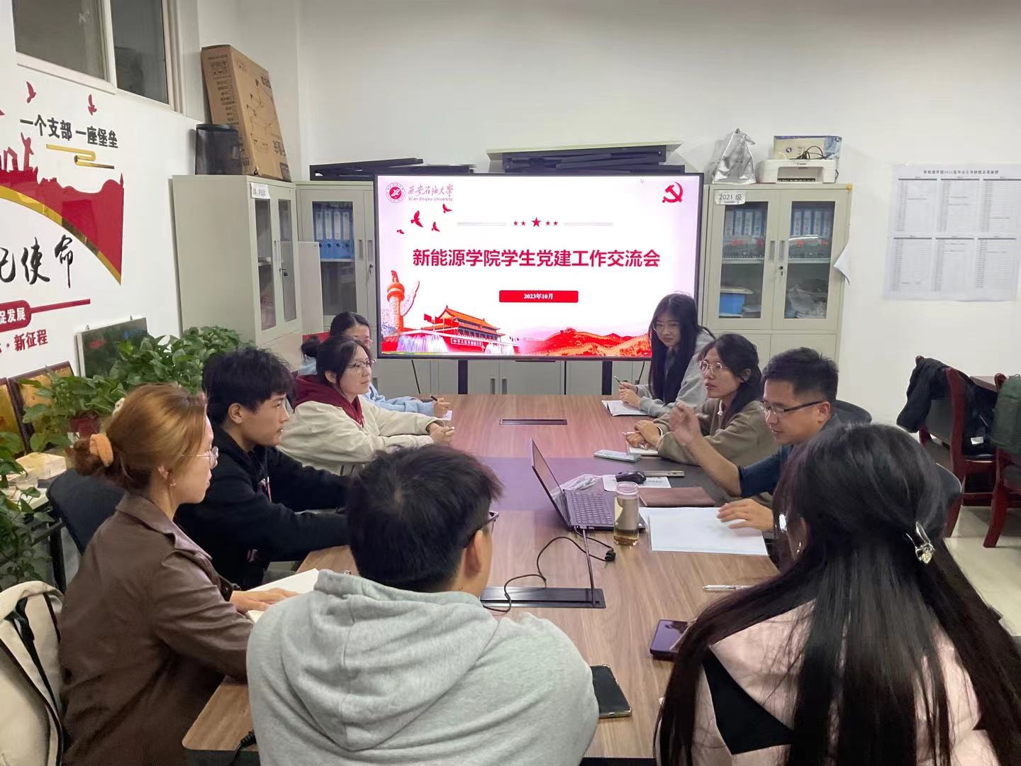 学生党建工作交流会在天工楼223室召开,学院学生党建办全体学生干部参会,会议由组织员马武军主持。