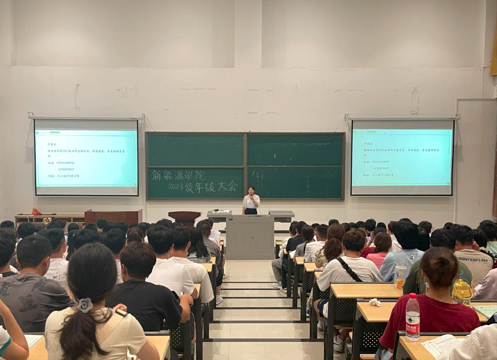 为全面做好2023级新生的学习和思想教育工作,9月8日下午,学院2023级本科生入学教育暨学风建设动员会在鄠邑校区天工楼115室举行。学院党委书记宋海洋,学生工作办公室主任马武军,辅导员卢筱佳及全体新生参加会议,会议由马武军主持。会上,宋海洋首先从历史沿革、基本情况、办学思路、院系设置、学生规模和学科建设等方面介绍了学校总体情况,并为同学们深入解读了国家“双碳”战略目标和能源转型的历史背景,介绍了杏吧论坛
