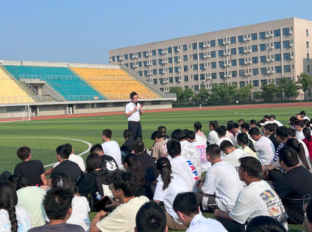 为热烈欢迎2023级新生,让新同学们之间加深了解,9月7日上午,学院学生工作办公室主任马武军、辅导员卢筱佳与团委、学生会成员在鄠邑校区东区田径场组织开展了新生破冰活动,2023级全体同学参加。活动伊始,各班在学院学生干部的带领下通过各种游戏环节加深了彼此之间的认识,消除了陌生感。随后,马武军通过生动、深入、具体的纵横比较,为新生开启“大学第一课”,他引用鲜活的案例引导青年学生深刻认识并回答“要到哪里去”的方向道路之问以及“要成为什么样的人”的理想未来之问。在互动环节中,马武军对同学们大学期间学习、生活、竞赛、交友等方面给出了中肯的建议,他希望新生要树立远大理想,奋发图强、刻苦学习,努力成长为德智体美劳全面发展的新时代青年。