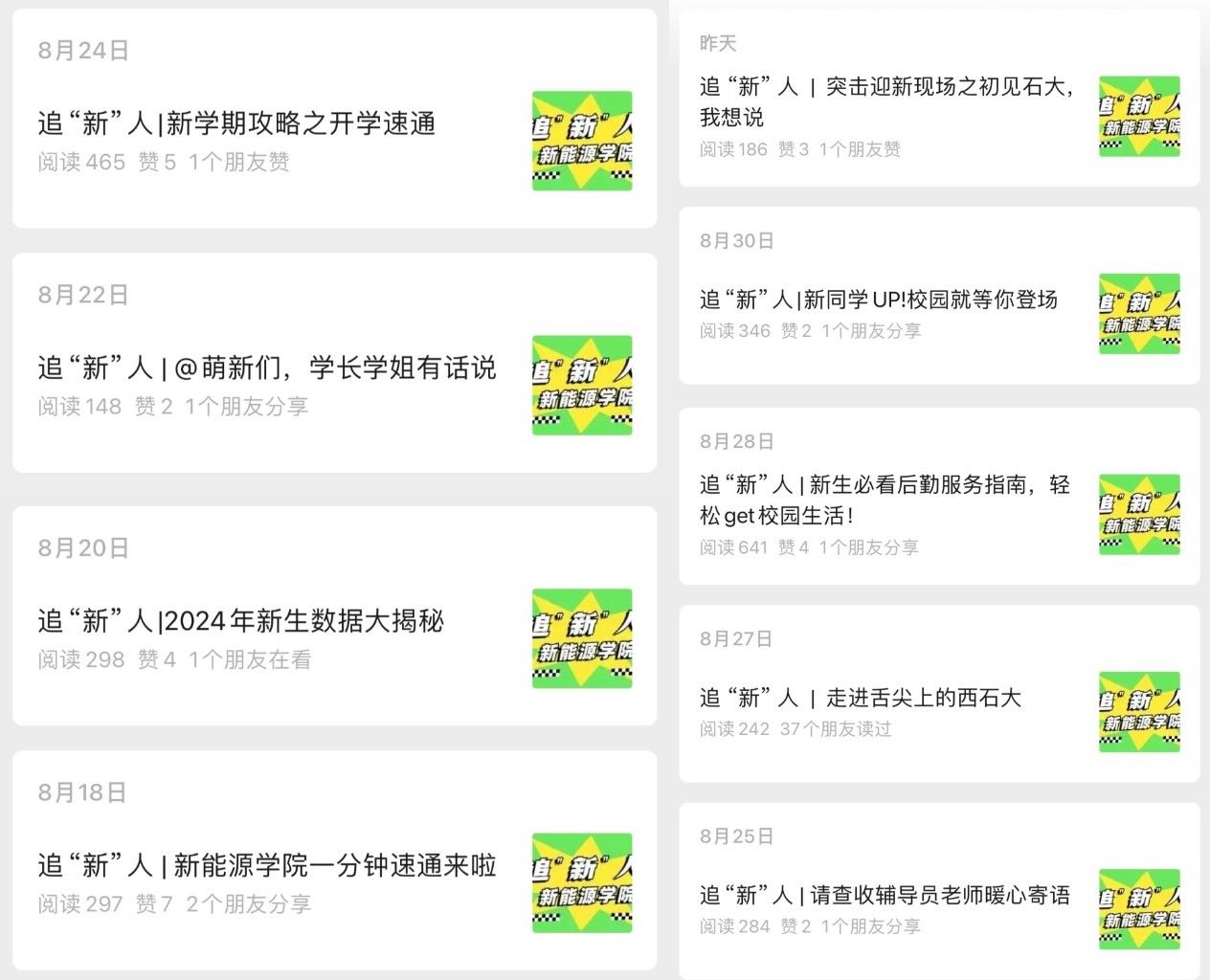 据悉,8月18日—9月1日学院团委宣传部精心组织开展追“新”人迎新系列活动,通过校园文化、后勤服务、辅导员寄语、学长学姐说等多方面内容,让新生更快的了解学校建设和大学生活,为帮助新生顺利报到,尽快融入大学生活。