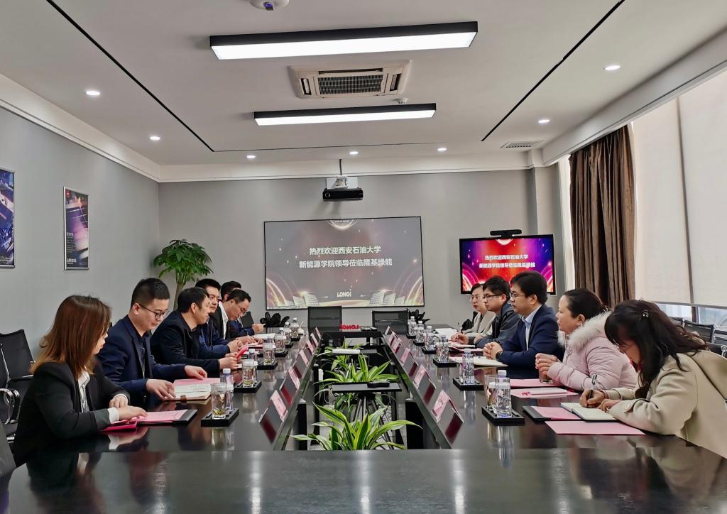 党委书记宋海洋、学工办主任马武军、新能源科学与工程系主任余华贵、新能源材料与器件系主任肖美霞、教工党支部书记安敏荣、能源与动力工程系苏晓辉一行前往隆基绿能科技股份有限公司硅片事业部开展校企合作交流座谈。隆基绿能硅片事业部人力资源部总监李辉、隆基绿能西安切片工厂党支部书记马勇、隆基绿能硅片事业部校招经理康超、王帅、招聘高级专员王一博、校友代表靳岩鑫出席活动。本次座谈会由隆基绿能硅片事业部校招经理王帅主持。