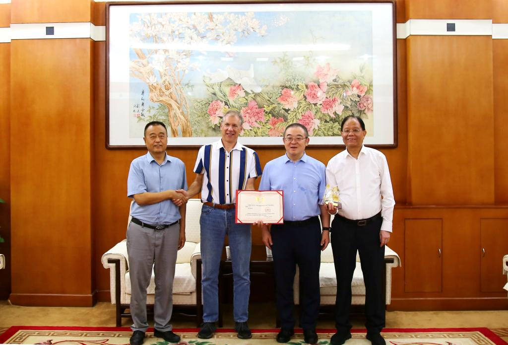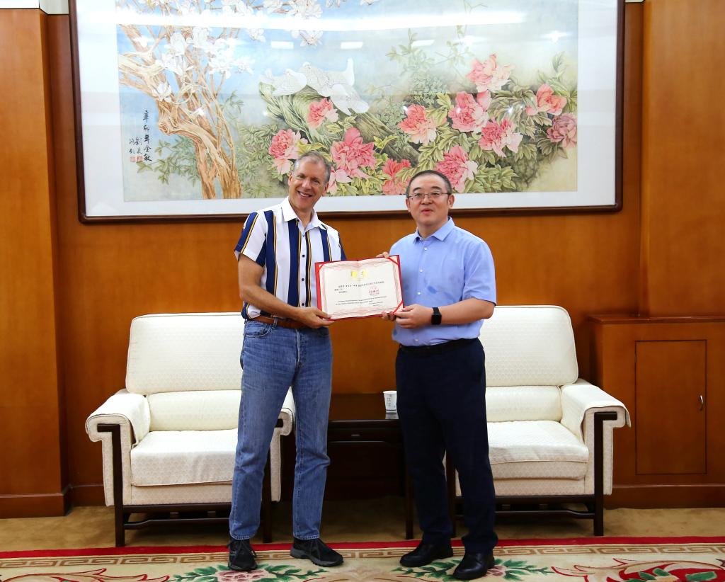 5月27日,美国艺术与科学院院士、物理学家、美国加州大学伯克利分校杰出教授丹尼尔·科曼来校交流,并作了题为《循环经济中的能源创新与合作》的专题报告。校党委书记常江会见了丹尼尔·科曼教授并为其颁发客座教授聘书。学校碳中和未来技术研究院院长,陕西延长石油(集团)有限责任公司总地质师、首席科学家王香增与科曼教授交流座谈,会议由副校长程永清主持。