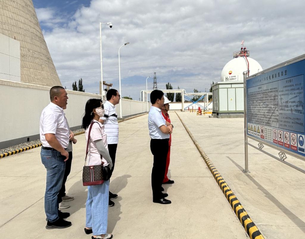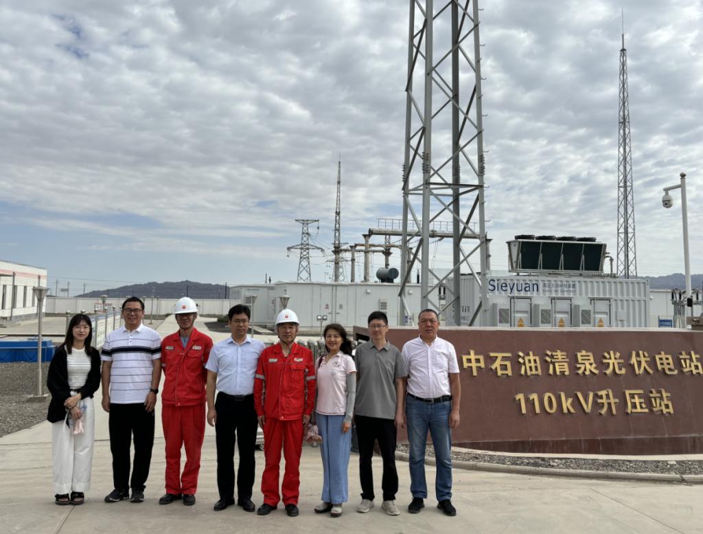 一行走访了中国石油玉门东300MW光伏电站、玉门油田水电厂绿氢制氢站、中国石油第一个电化学储能电站——玉门油田200兆瓦光伏并网电站、中国石油第一个国网系统外新能源计量中心——国家能源计量中心(电力)酒泉分中心、玉门油田第一座太阳能综合利用试点示范项目——老君庙采油厂太阳能综合利用试点示范项目等单位,双方就玉门油田新能源发展需求、平台共建和技术攻关等方面进行了具体的交流。