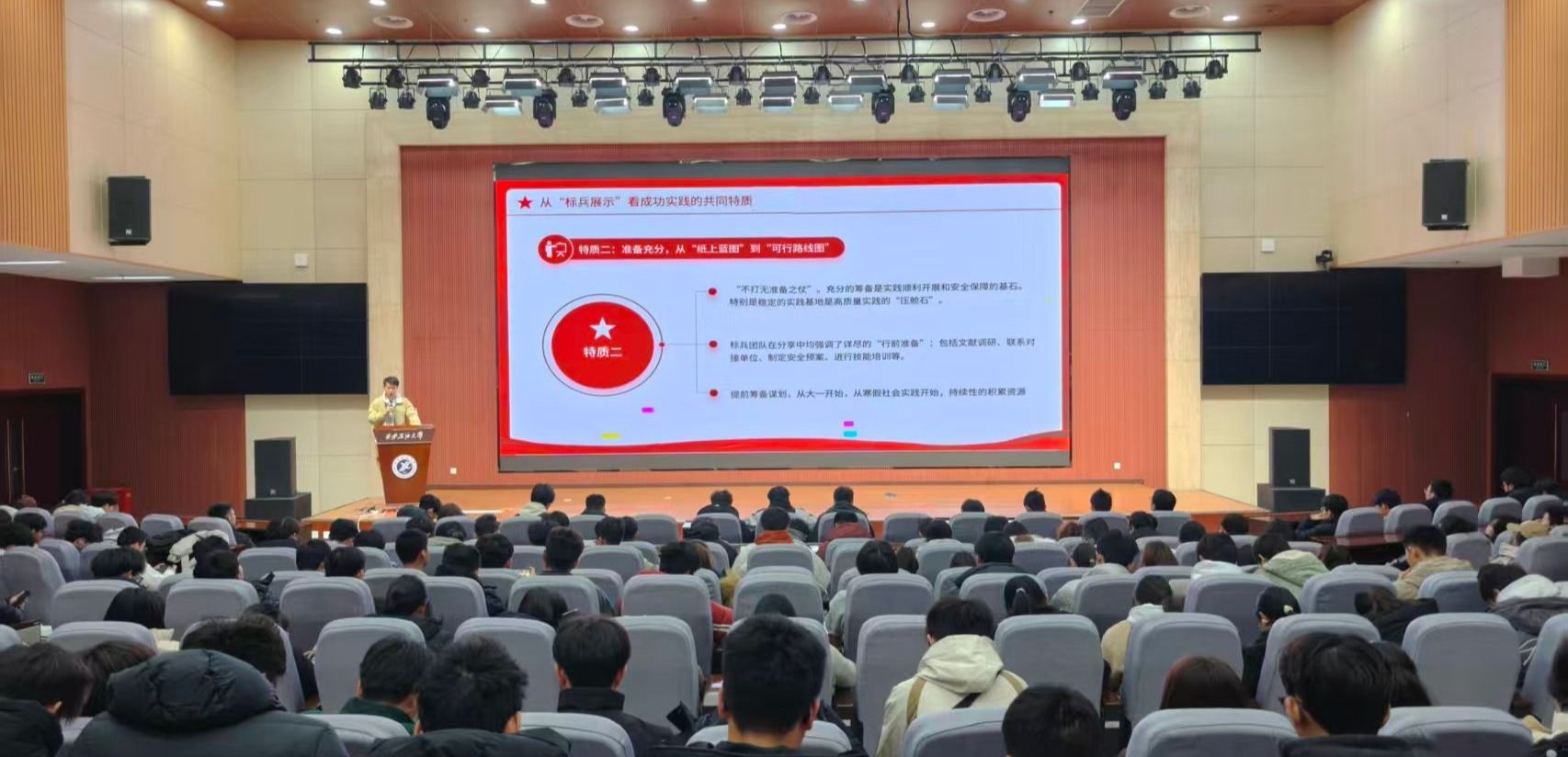 会上,王泽文老师围绕“挑战杯”竞赛展开系统性指导,从竞赛规则解读、团队组建技巧、选题方向锚定、项目策划逻辑到答辩展示要点,层层递进拆解参赛全流程。他着重强调,竞赛作品需在创新性、科学性、实用性上形成核心竞争力,并结合历年获奖典型案例,深度剖析优秀项目“立足社会热点、紧扣行业痛点、搭建严谨框架、呈现精彩成果”的成功密码,为同学们提供了兼具理论高度与实操价值的参赛指南。