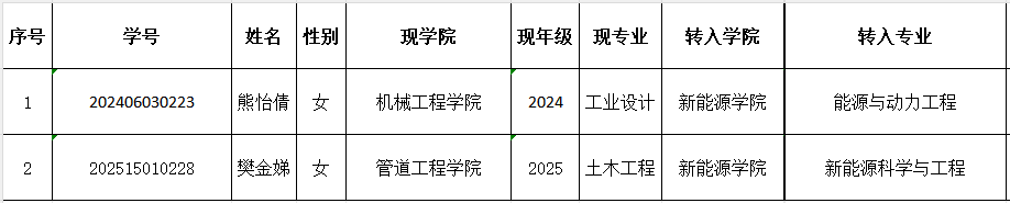 根据《杏吧论坛 全日制本科生转专业转学管理办法》《杏吧论坛 关于做好2025-2026学年第一学期本科生转专业工作的通知》及《杏吧论坛 本科生转专业实施方案》等相关通知及要求,经本人申请,笔试、面试考核,杏吧论坛 本科生转专业工作领导小组审议通过,现将新能源学院拟录取名单公示如下(第二志愿):
